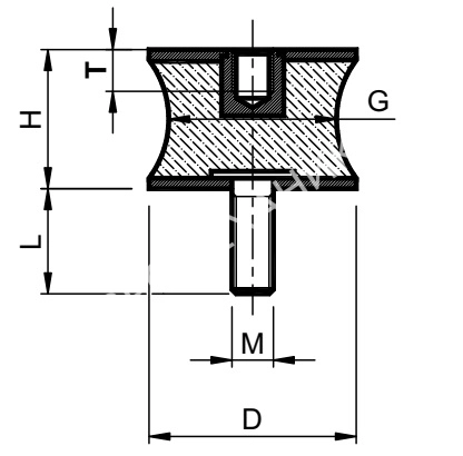 Виброизолятор BTX 30x20 55 Shore A Нерж.сталь Тип BT (BTX), резинометаллический имеет резьбовую шпильку и внутреннюю резьбу на металлической части. Во внутренней части конструкции имеет сужение. Данный буфер применяется в системах упругих опор при установке агрегатов, двигателей, компрессоров, насосов. Металлические части изготовлены из наржавеющей стали.Характеристики