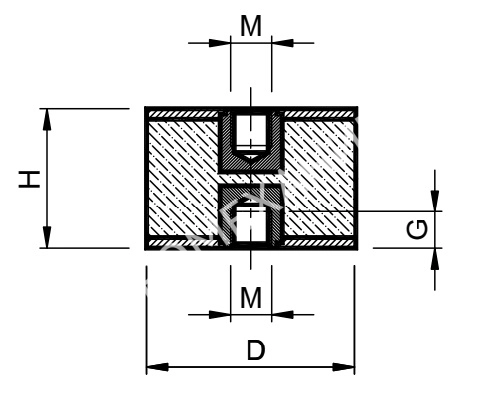 Виброизолятор 2F3 60x30xM12 55 Shore A Тип C, резинометаллический цилиндрический с двумя резьбовыми отверстиями. Данная виброопора применяется для гашения колебаний и снижения вибраций между оборудованием и фундаментом (опорой) для двигателей, компрессоров, кондиционеров и сплит систем, насосов, а так же станков.Характеристики