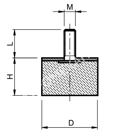 Виброизолятор 1P1M4 75x50 55 Shore A Тип D, резинометаллический цилиндрический с одной резьбовой шпилькой. Данный буфер применяется для гашения толчков и снижения амортизационного хода движущихся масс. Применяется в станках, холодильном оборудовании.Характеристики