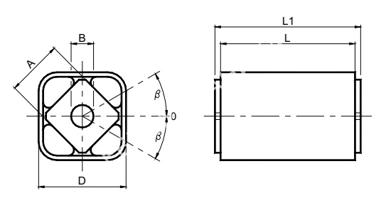 Упругий элемент VIB Type AR-F 40 х 40, аналог ROSTA DR-C 27x 40. Внешний корпус выполнен из стали, а внутренний квадрат- из алюминиевого профиля из легкого сплава. Надежное соединение получается из-за сил трения между отверстием и проходным болтом (пример A). Это решение позволяет быстро соединить рычаг в нужном положении на 360°. Для высоких нагрузок с поворотом более ± 10 °, изделие может быть изготовлено со шпоночным пазом (пример b).Внешний квадратный корпус может быть зафиксирован с помощью зажима SR.Характеристики