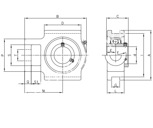 Подшипниковый узел UCT 205 c самоустанавливающимся подшипником UC, со стопорным винтом.Корпус типа T. Материал корпуса - Чугун.Используется как натяжное устройство в конвейерах и другом оборудовании.
