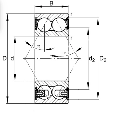 Шариковые радиально-упорные двухрядные подшипники воспринимают высокие радиальные и осевые нагрузки в двух направлениях.Характеристики