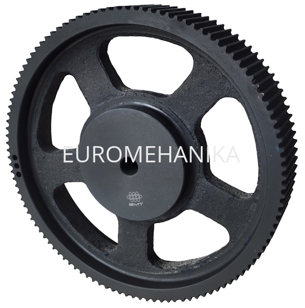 Шкив зубчатый под расточку, для ремней с профилем зуба 14M и шириной ремня 55 мм, с числом зубьев шкива Z= 168. Применяются в высоконагружены приводах для передачи больших крутящих моментов, могут применяться на тихоходных машинах. Материал шкива GG. Вес детали 40 кг. Торговая марка EMT.Характеристики