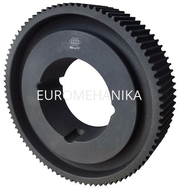 Шкив зубчатый для специальных ремней SYNCHROCHAIN и POLY CHAIN профиля CTD и MGT под втулку тапербуш,с шагом зубьев 14M и шириной ремня 20 мм, с числом зубьев шкива Z= 72. Применяются в машиностроении, в станках с миниатюрными приводами для точного позиционирования. Материал шкива GG. Вес детали 11,5 кг. Торговая марка EMT.Характеристики
